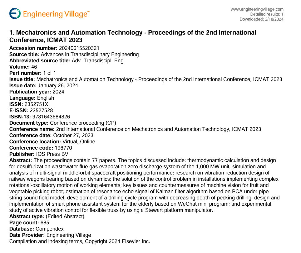 1. NEWS: ICMAT 2023 conference proceedings was successfully published and indexed by EI Compendex & Scopus!