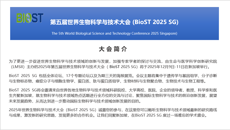 第五届世界生物科学与技术大会 (BioST 2025 SG) (BioST 2025 SG)